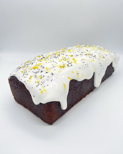 Classic lemon and poppy seed cake, soft and moist and finished with a lemon sugar glaze and poppy seeds.